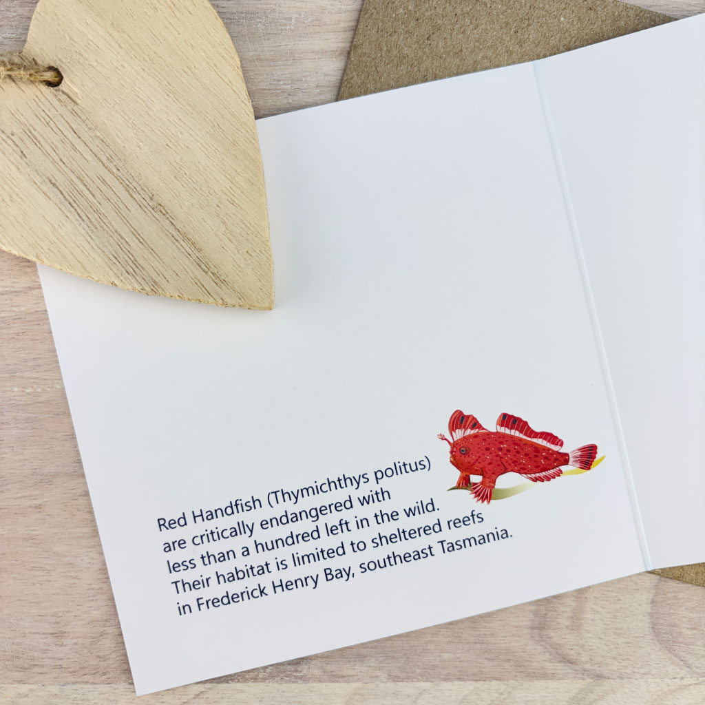 Inside Message: Information on the Red Handfish on the left inside cover.
