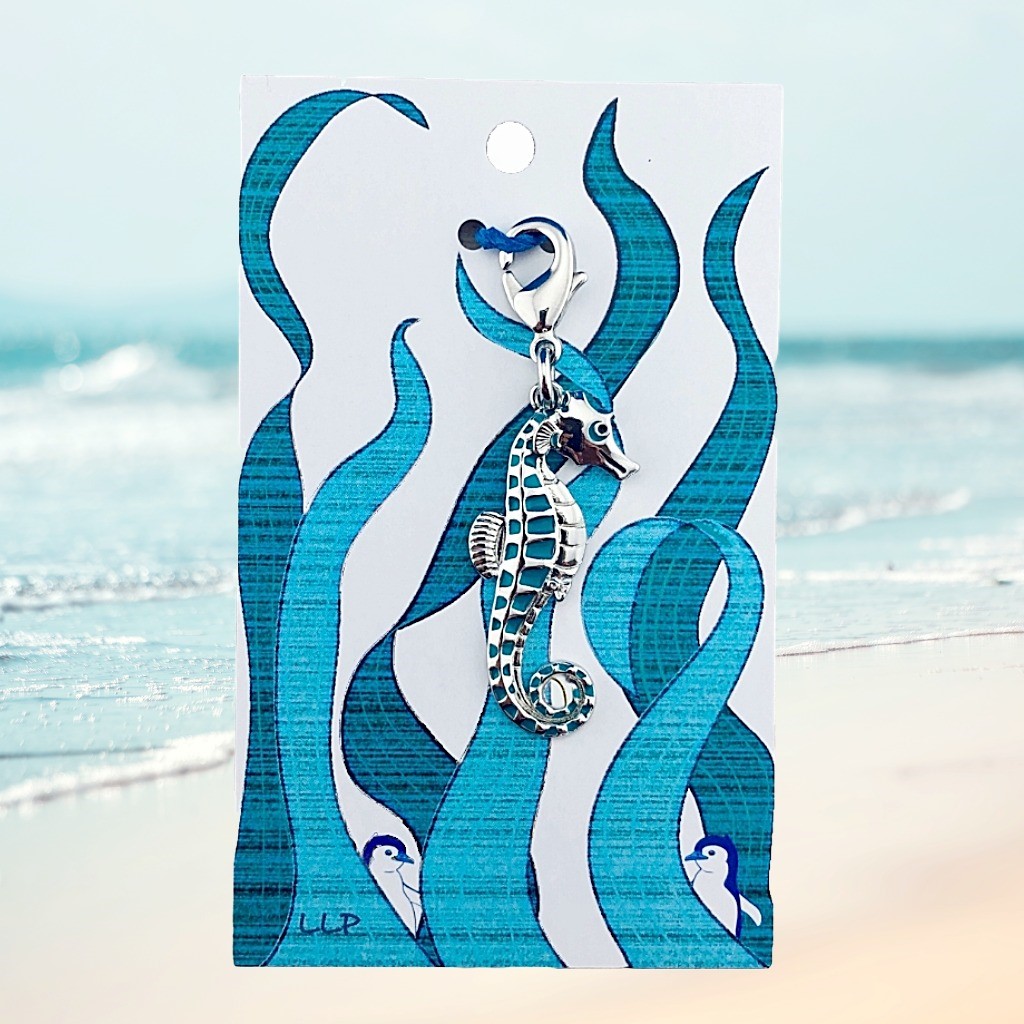 All our seahorse charms come with a strong lobster clasp which easily attaches to garment zippers and purses.